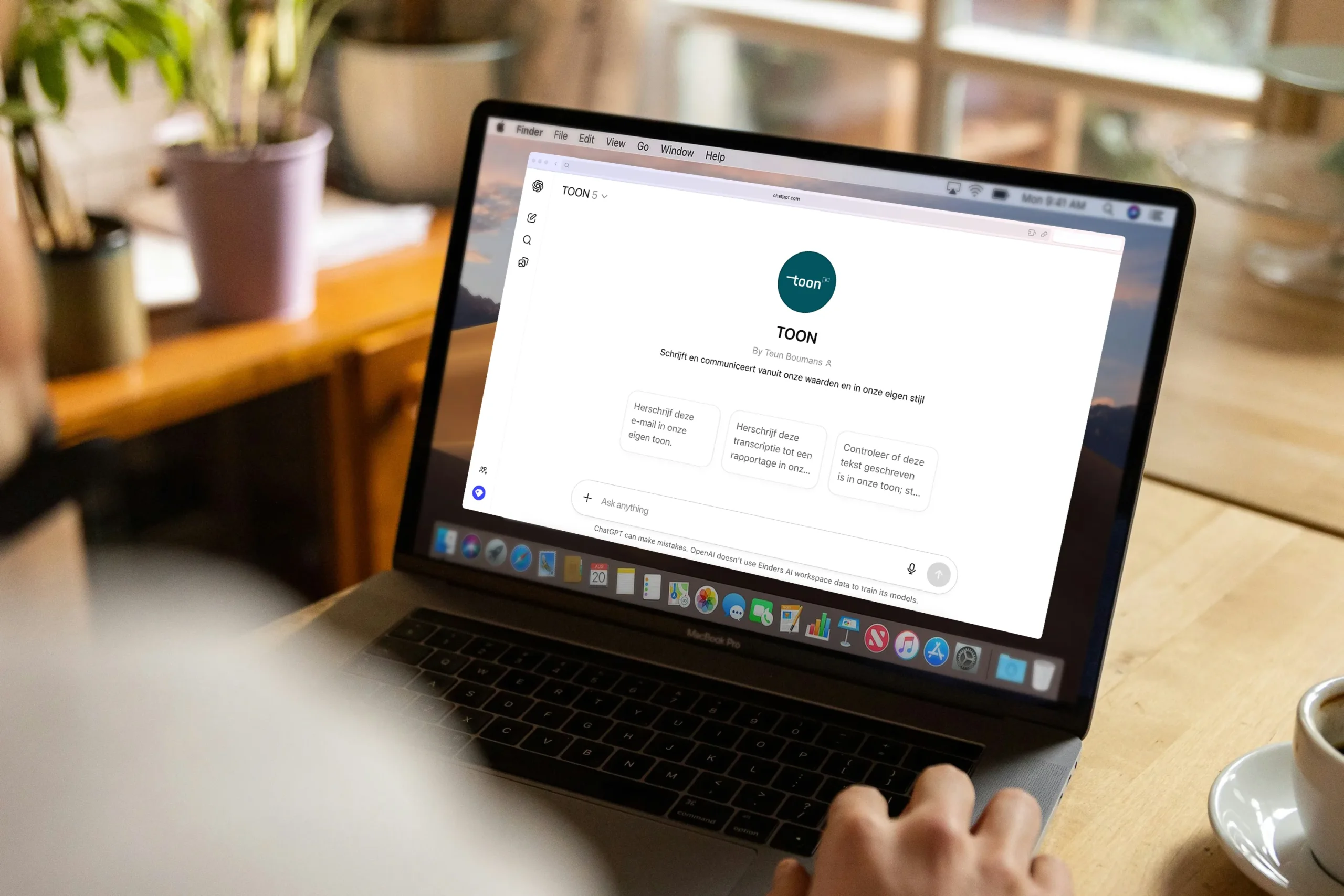 Iedereen in jouw organisatie gebruikt al ChatGPT of Copilot voor z’n mailtjes en appjes. Hoe zorg je nu dat de teksten die daar uitkomen bij jouw organisatie passen? Dat je niet van die AI-eenheidsworst krijgt? Dat doe je met TOON. De door Einder ontwikkelde AI-assistent die weet hoe je overtuigend communiceert met jouw doelgroepen, in jouw sector, vanuit jouw waarden en identiteit.